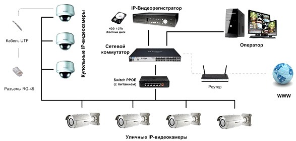 Основными элементами любого видеонаблюдения являются: